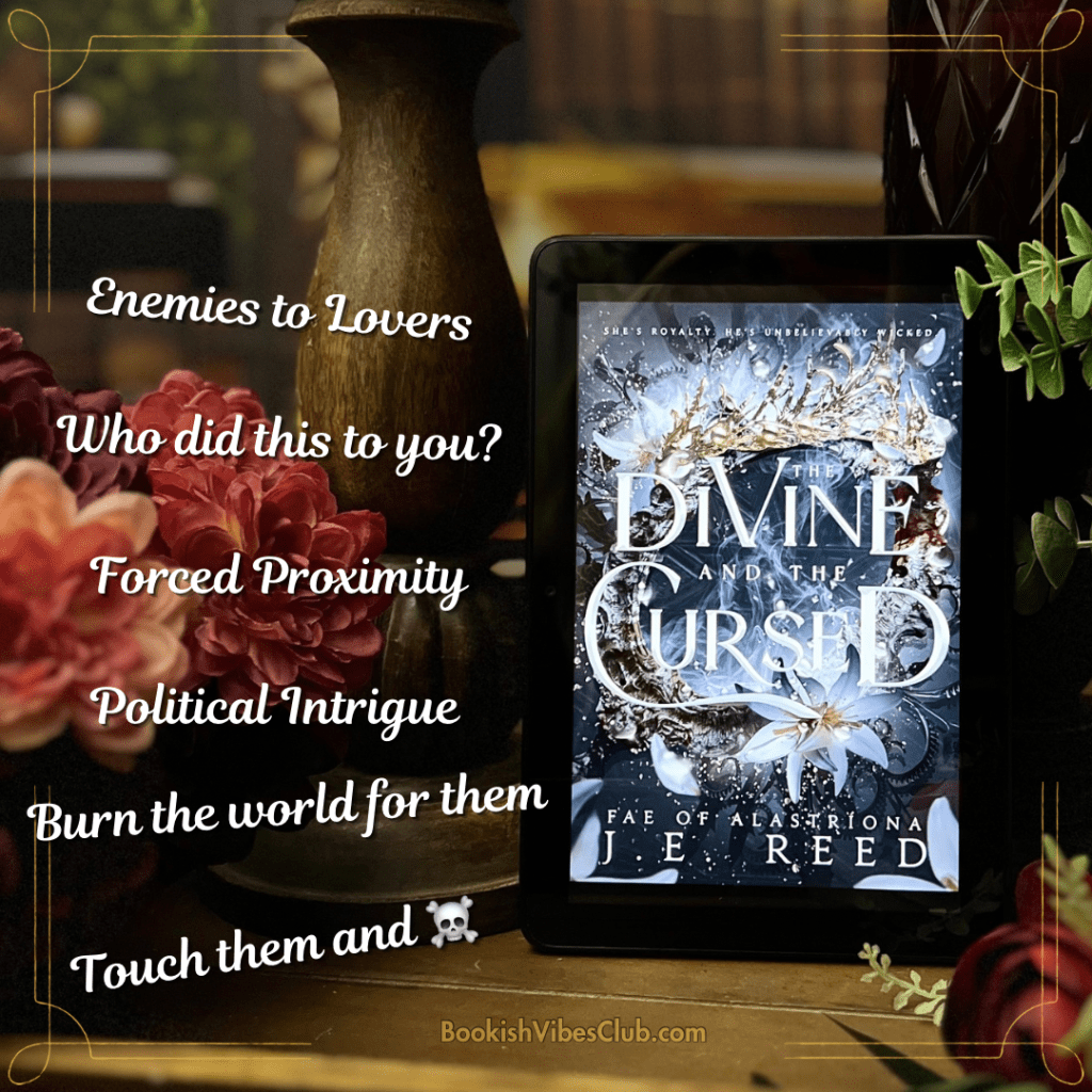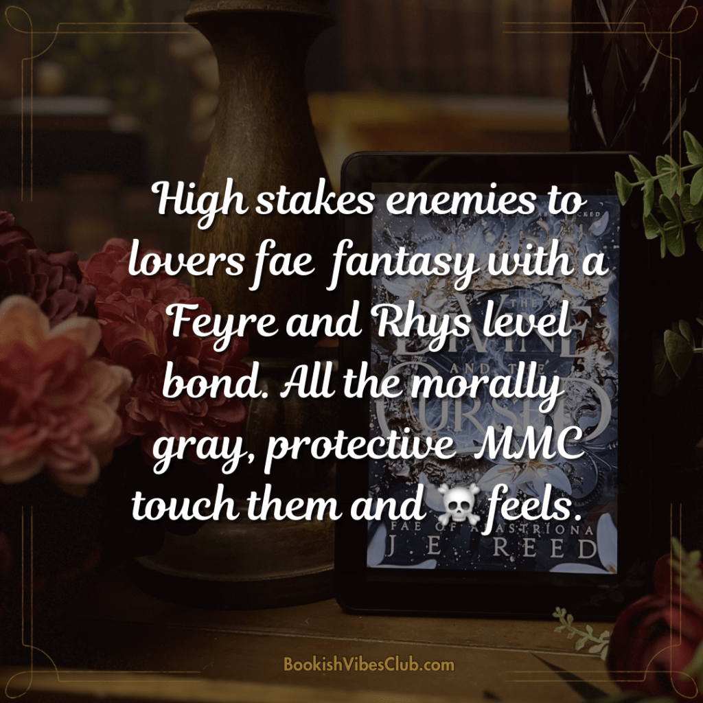 The Divine and The Cursed gives all the Rhys and Feyre vibes with the enemies to lovers, touch them and ☠️, them against the world, and dangerous attacks. The way the magic powers are described and act in this book chef’s kiss are my absolute favorite so far!! I loved the plot, how it moved and played out❤️🔥 This is the BEST read!