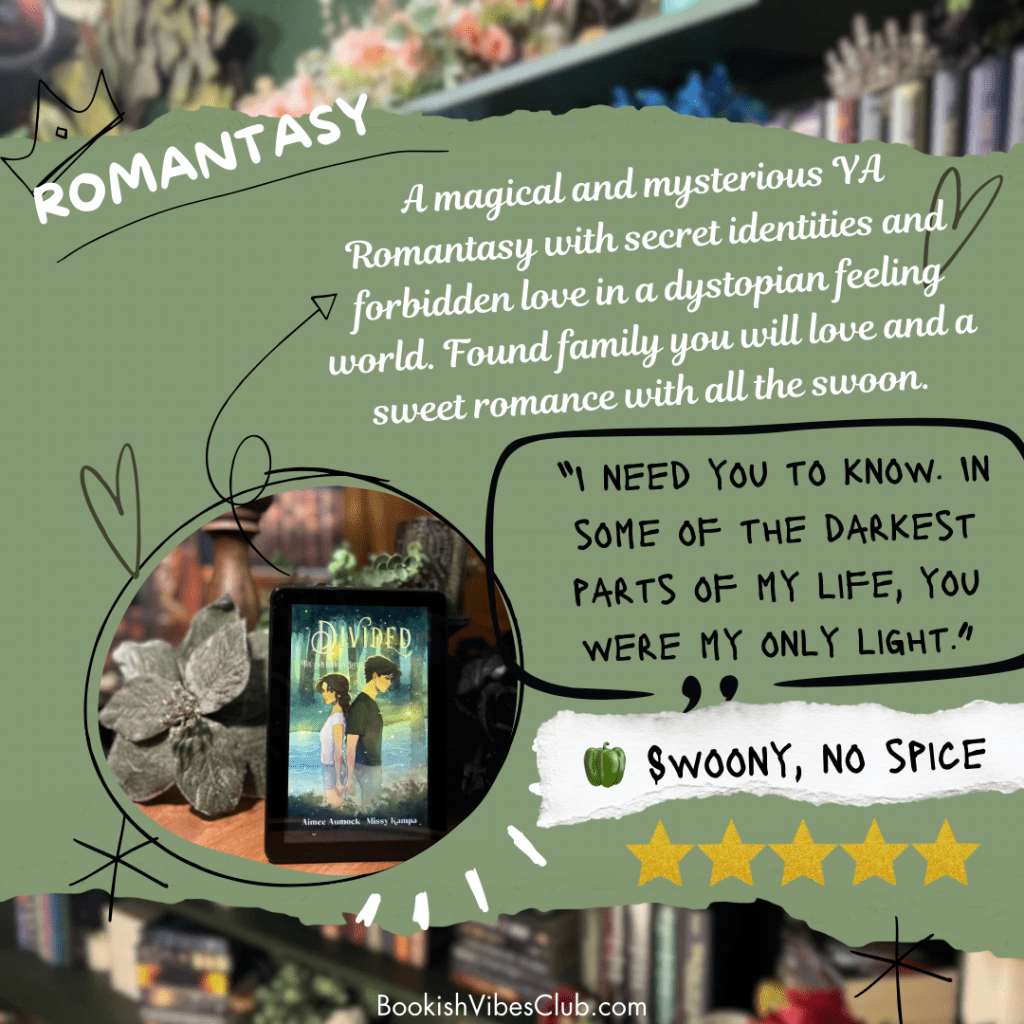 What a unique and wonderful YA Romantasy! I could not put this book down. This fast paced story was filled with mystery and high stakes moments. You get a sweet forbidden romance between a very special FMC and a protective cinnamon roll MMC who face dangerous trials together while having to overcome the powers trying to keep them apart. The swoon in this is on point with chin tilts and private moments. You get a magical Romantasy in a dystopian feeling world divided between the magic realm and the human realm. This is a true YA with 18 year old main characters. Love the found family, the romance, the magic powers, and the HEA. I highly recommend this read and will read it again.